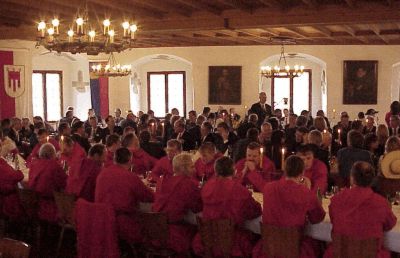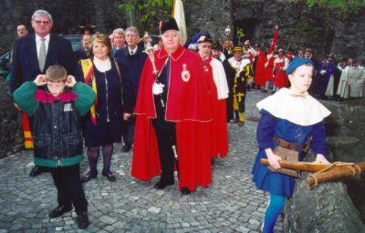 Der Festumzug durch die Altstadt von Feldkirch erreicht den Vorhof der Montfortischen Schattenburg ... |