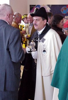 Bei der Eröffnung der Wanderausstellung mischen sich Behördenvertreter mit historischen Begleitgruppen. |
